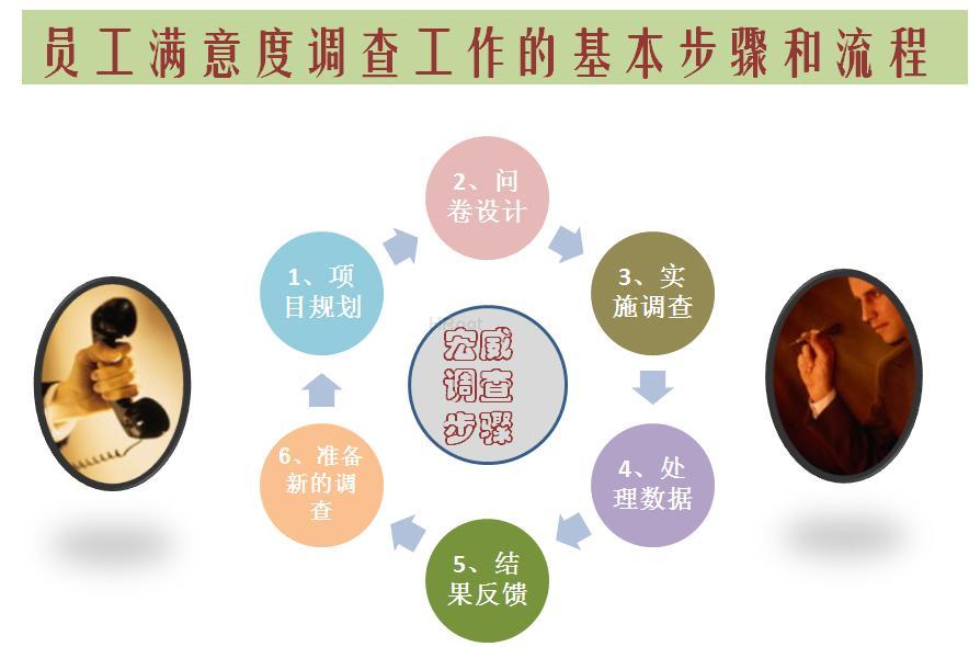 员工满意是指一个员工通过对企业所感知的效果与他的期望值相比较后所形成的感觉状态,是员工对其需要已被满足程度的感受。员工满意是员工的一种主观的价值判断,是员工的一种心理感知活动,是员工期望与员工实际感知相比较的结果。调查程序如图二所示: