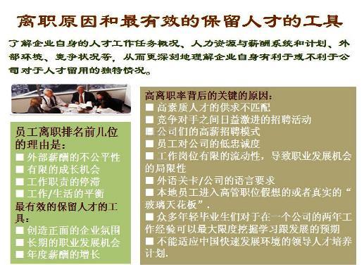 那么,如何留住人才,特别是高级人才,成为企业当务之急的大事,也是本项目管理顾问(Management Consultant ) 需要解决的最关键问题。
