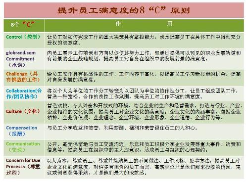 有人总结了提升员工满意度的8“C”原则,我们认为很好,如图六所示: